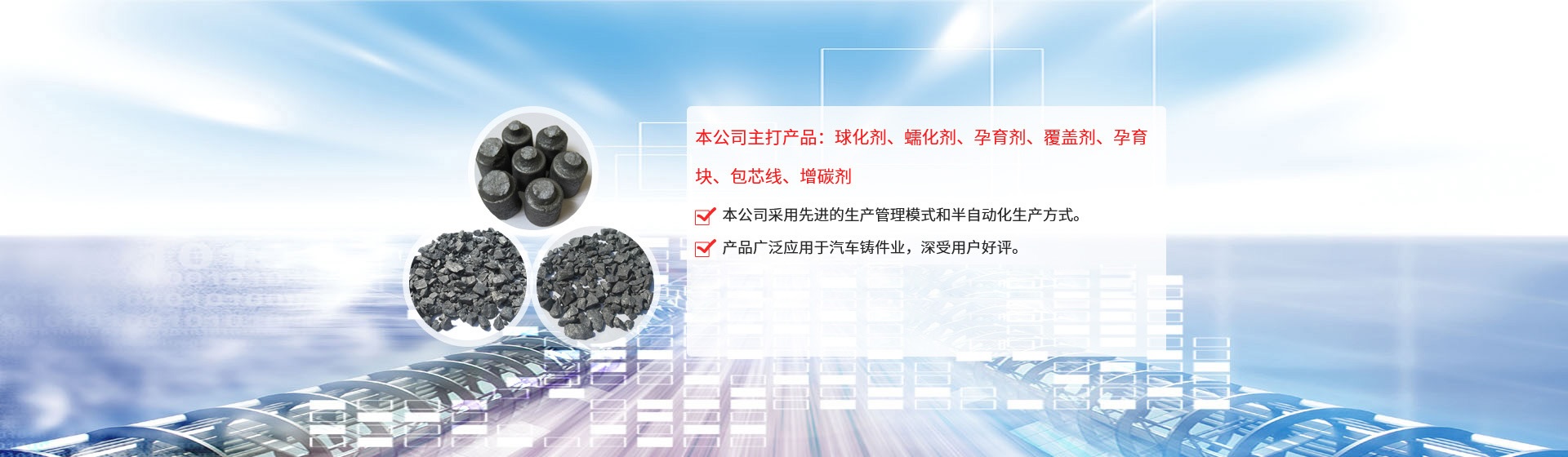 公司引進(jìn)日本企業(yè)的生產(chǎn)管理模式,半自動化生產(chǎn)方式。目前生產(chǎn)能力:球化劑250T/月、孕育劑300T/月、鑄造相關(guān)品200T/月。為嚴(yán)格控制產(chǎn)品質(zhì)量,公司采用國內(nèi)的ICP-AES等離子體發(fā)射光譜儀對采購原